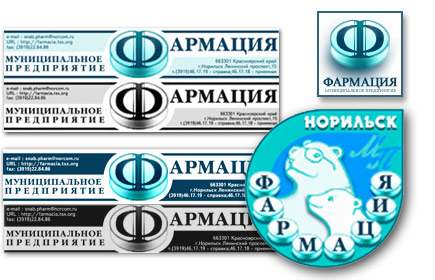 Pharmacia, municipal drugstores chain corporate branding package. Logo, web-site, street sign, stationery, business cards, e-blast